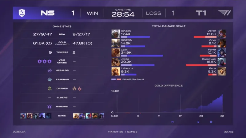 NS 1-1 T1:上中野中期集体发力,NS大胜T1扳平比分